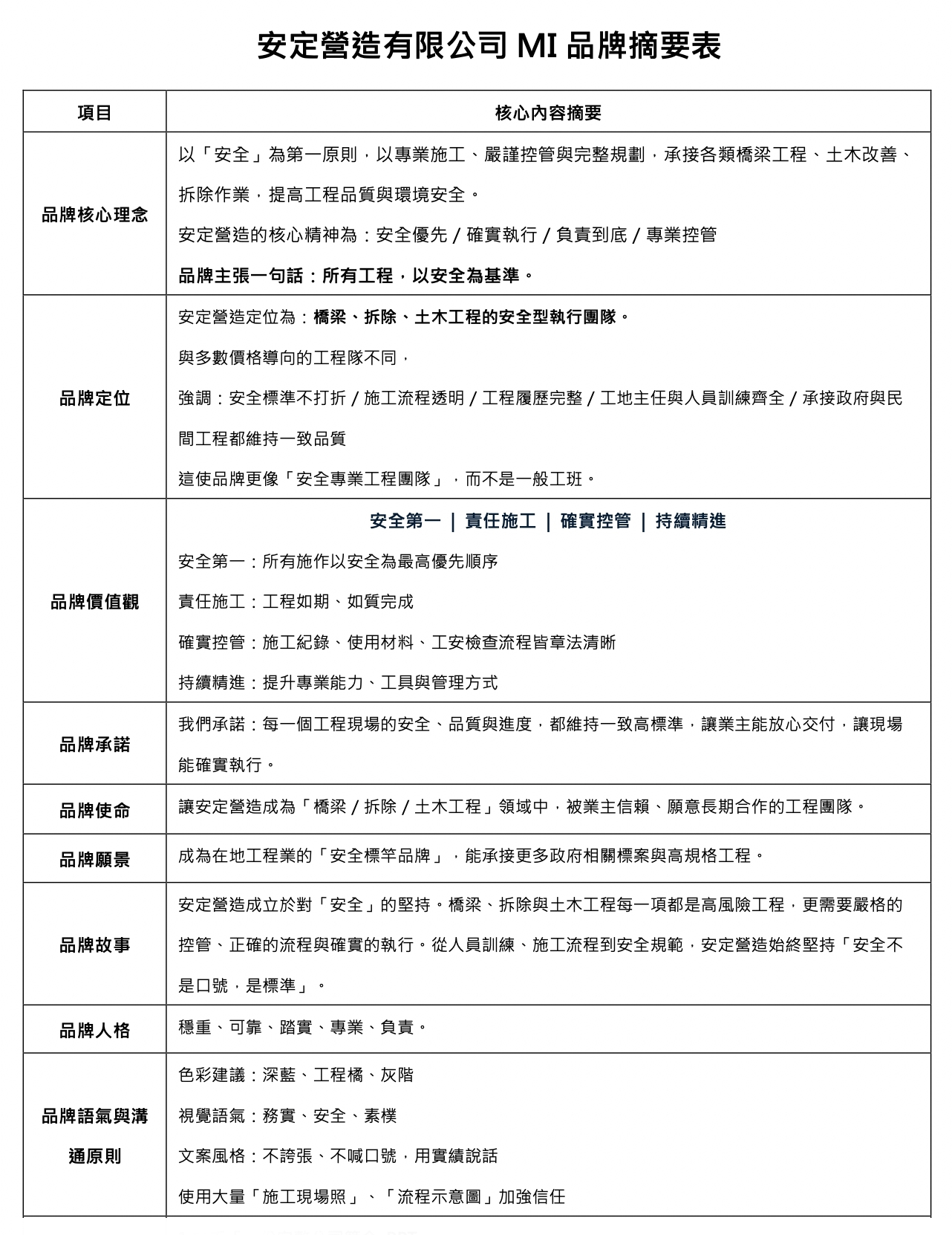 這樣的品牌定位,讓簡報、投標文件、工程說明全部有一致核心,而不是每次重講一遍「我們很負責」