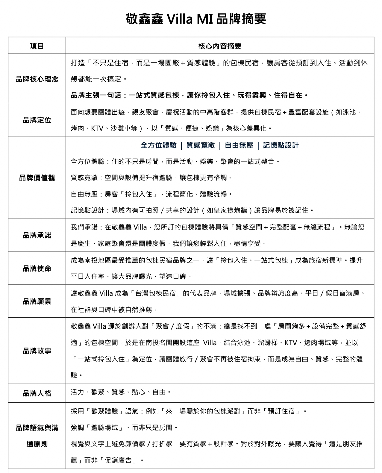 敬鑫鑫 Villa 的品牌核心不是住宿,而是: